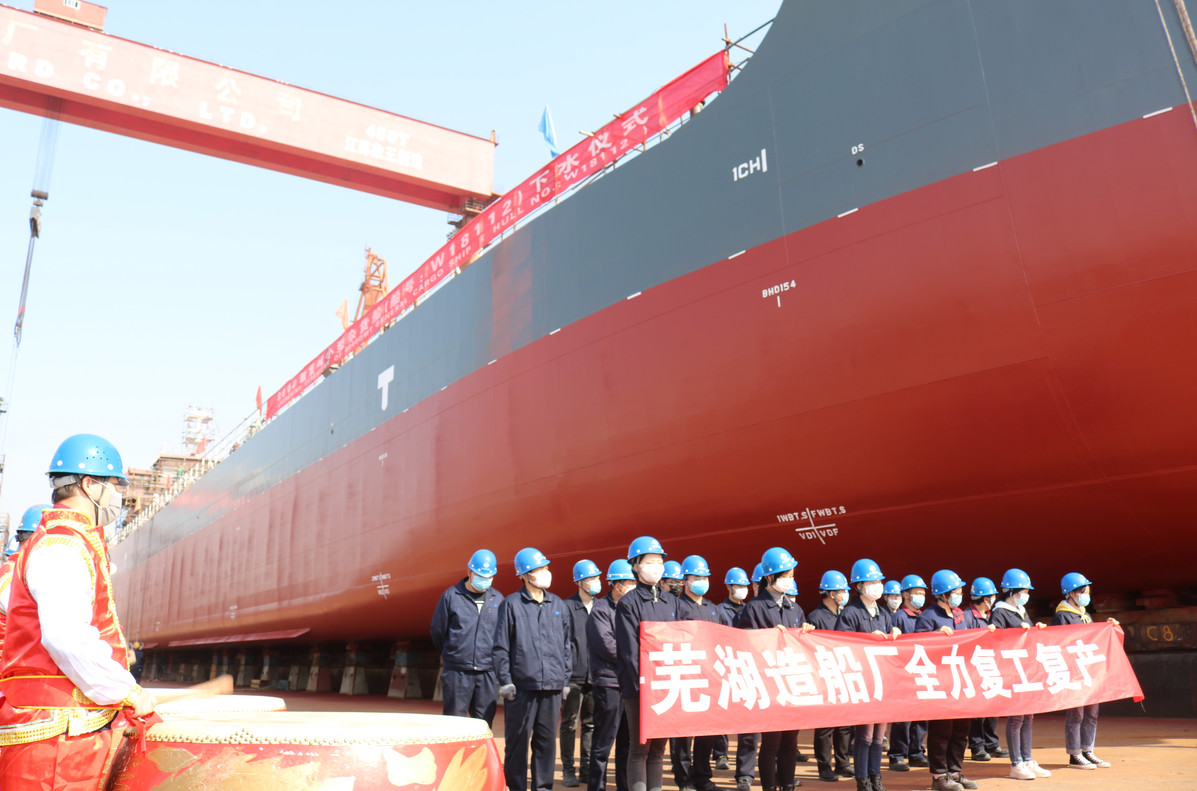 陽春三月,大地回暖,萬物復(fù)蘇。國內(nèi)疫情防控和經(jīng)濟恢復(fù)局面持續(xù)向好,蕪船復(fù)工復(fù)產(chǎn)造船增速,喜事連連,繼20天內(nèi)完成“高欄002”、“聚和普度”和“SK728”三型船的試航、交船,公司在印度市場首批10艘8000噸散貨船外貿(mào)訂單2號船,按建造節(jié)點時間計劃要求順利下水,蕪湖造船廠全力復(fù)工復(fù)產(chǎn),擼起袖子加油干,我們用奮斗不負春光!