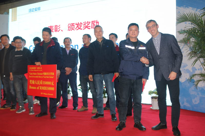 Wijnne Barends公司監(jiān)造組組長(zhǎng)Iemke、監(jiān)造組成員Bert、張飛、Selina,DNV船級(jí)社南京區(qū)域總負(fù)責(zé)尹洪波、DNV船級(jí)社現(xiàn)場(chǎng)經(jīng)理胡紅衛(wèi),蕪湖造船廠有限公司常務(wù)副總經(jīng)理趙仲武、副總經(jīng)理杜成昌及生產(chǎn)、設(shè)計(jì)團(tuán)隊(duì),優(yōu)秀勞務(wù)隊(duì)代表等相關(guān)嘉賓出席本次表彰大會(huì)。